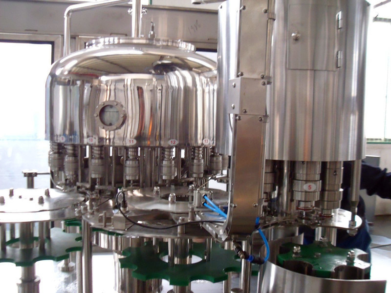(2) La machine pure de l'eau est principalement utilisée dans les opérations remplissantes de l'eau minérale/eau pure. Les trois fonctions du lavage, du remplissage et du capsulage des bouteilles se composent dans un corps de la machine. Le processus entier est automatique.