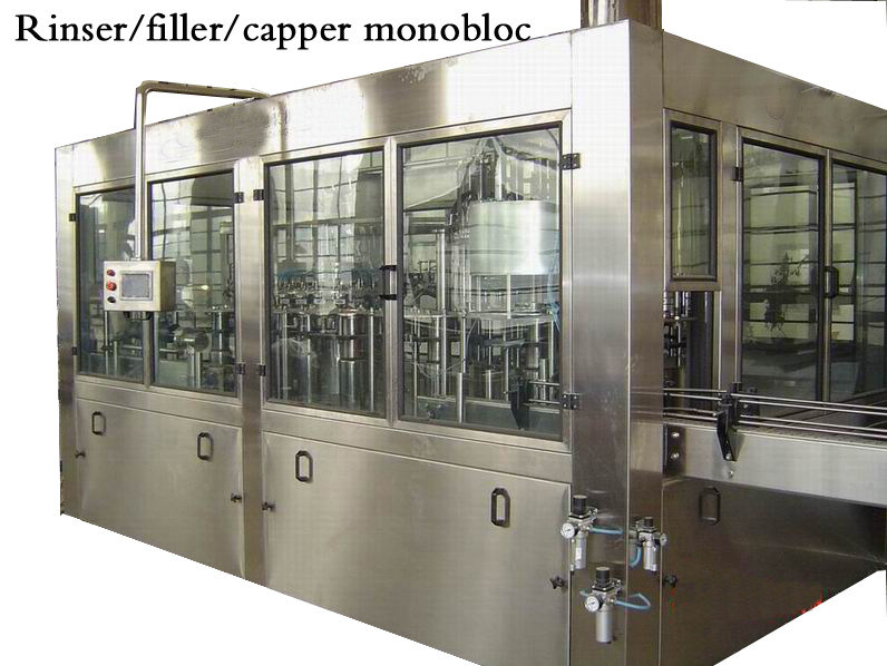 (2) La machine de remplissage de bouteilles de l'eau est principalement utilisée dans les opérations remplissantes de boisson. Les trois fonctions du lavage, de la suffisance et du joint de bouteille se composent dans un corps de la machine. Le processus entier est automatique.