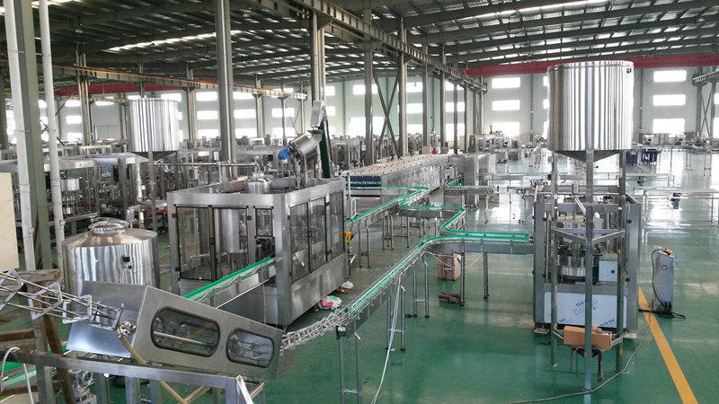 (2) La ligne remplissante de jus est principalement employée dans les opérations remplissantes de boisson chaude. Les trois fonctions du lavage, du remplissage et du capsulage des bouteilles se composent dans un corps de la machine. Le processus entier est automatique.